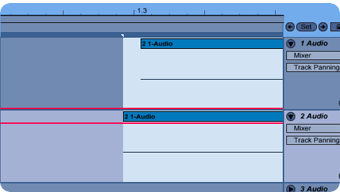 Once you have two identical mono tracks, the next step is to pan your two tracks to opposite sides of the stereo field. At left, in Live’s mixer view, you can see that we’ve panned track 1 all the way to the left, and track 2 all the way to the right. To get to Live’s mixer view, all you need to do his hit the “tab” key, which toggles between mixer and sequencer views. By creating two identical mono tracks - one panned hard-left, and one panned hard-right - essentially we’ve created a stereo track out of two mono tracks. But, in contrast with recording a single stereo track, the action of panning two mono tracks has the massive advantage of being able to change one side of the stereo image independently of the other side.